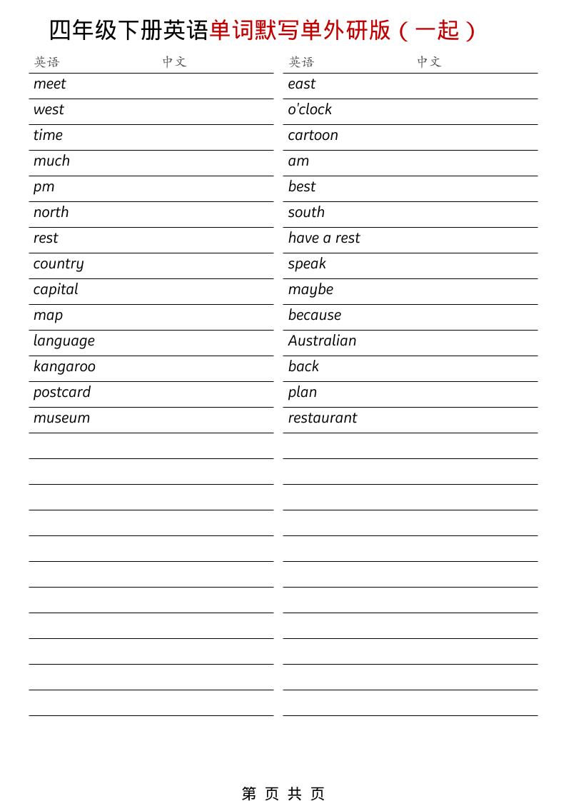 四年级下英语全册单词默写单《外研版(一起)》悟思1小时前更新关注私信0130866四年级下英语全册单词默写单《外研版(一起)》此内容为付费阅读,请付费后查看¥1.9年会员免费永久会员免费立即购买您当前未登录!建议登陆后购买,可保存购买订单付费阅读已售 5 ——预览已结束,还剩2页未读——您已获得此文档下载权限,请点击底部下载完整文档 课程下载: 此处内容已隐藏,请付费后查看 © 版权声明课程皆来自互联网,请分辨真假,保护好口袋,主要是让大家学学互联网上老司机的搞钱思路,大家一起发财!THE END四年级 喜欢就支持一下吧点赞66 分享QQ空间微博QQ好友海报分享复制链接收藏