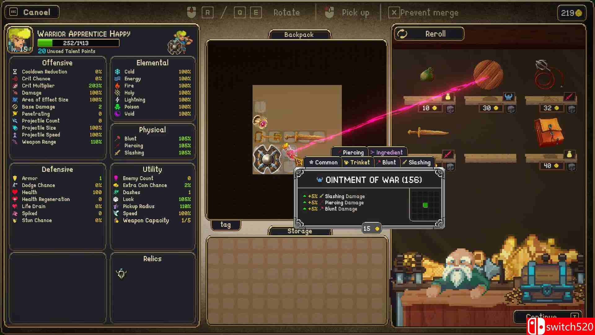 《背包幸存者》是一款动作冒险类(ACT)游戏,击退成群的怪物,用各种武器和物品填满你的背包,一路击败强大的Boss!随着角色等级的提升,每次冒险都会有所不同,解锁新的武器、物品、遗物和能力。switch520
